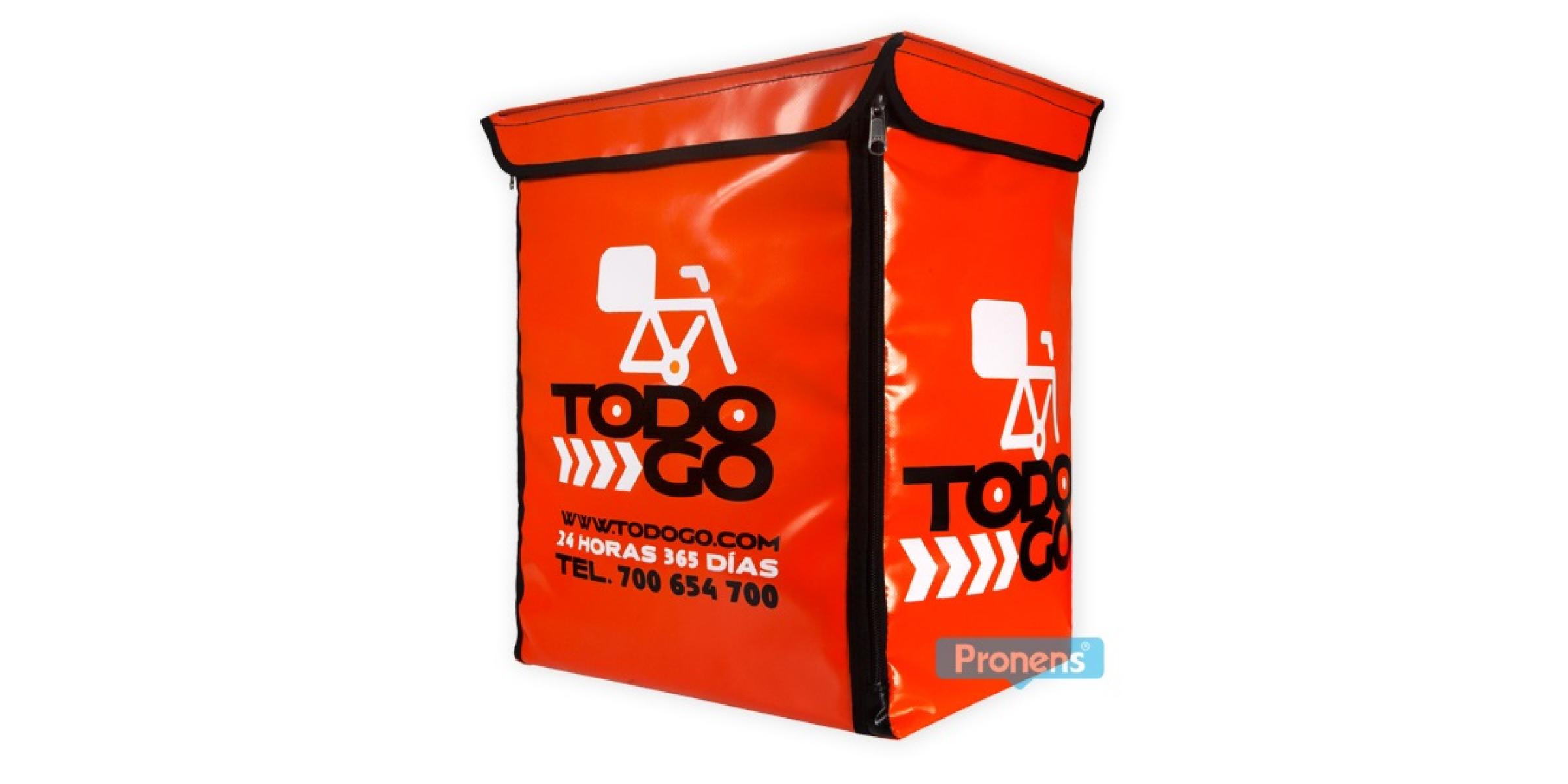 A PRONENS som fabricants de Motxilles Smart Delivery personalitzades per a repartiment a domicili de paqueteria i missatgeria última milla, dissenyades per a empreses de transport, courier, sameday i nextday. Model professional similar a la motxilla delivery Glovo sense estendre (35 × 30 × 45 cm aprox.), ideal per a entregues urbanes eficients i promoció de marca.