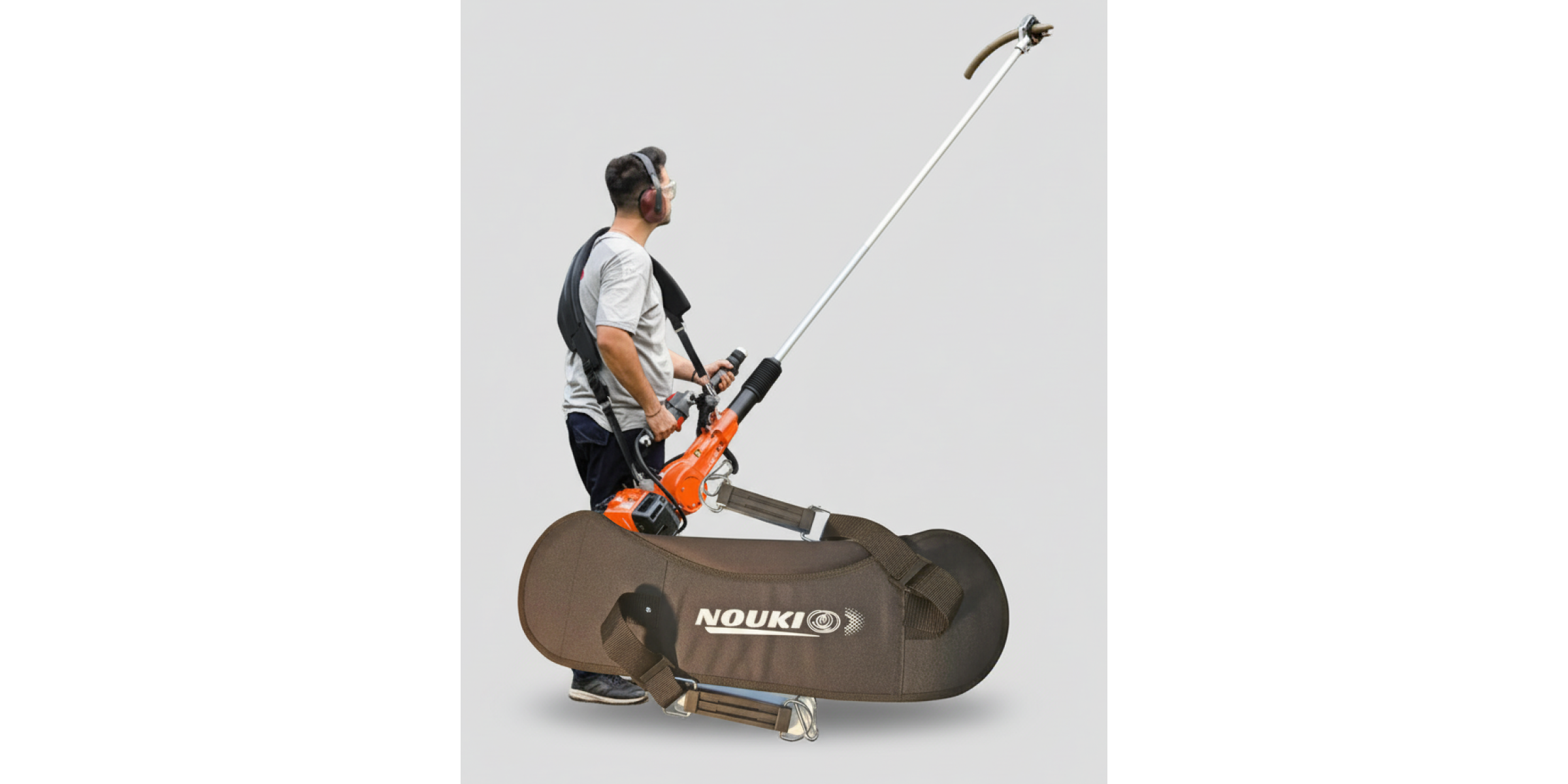- Arnés para vareadora con 2 mosquetones de anclaje seguros.