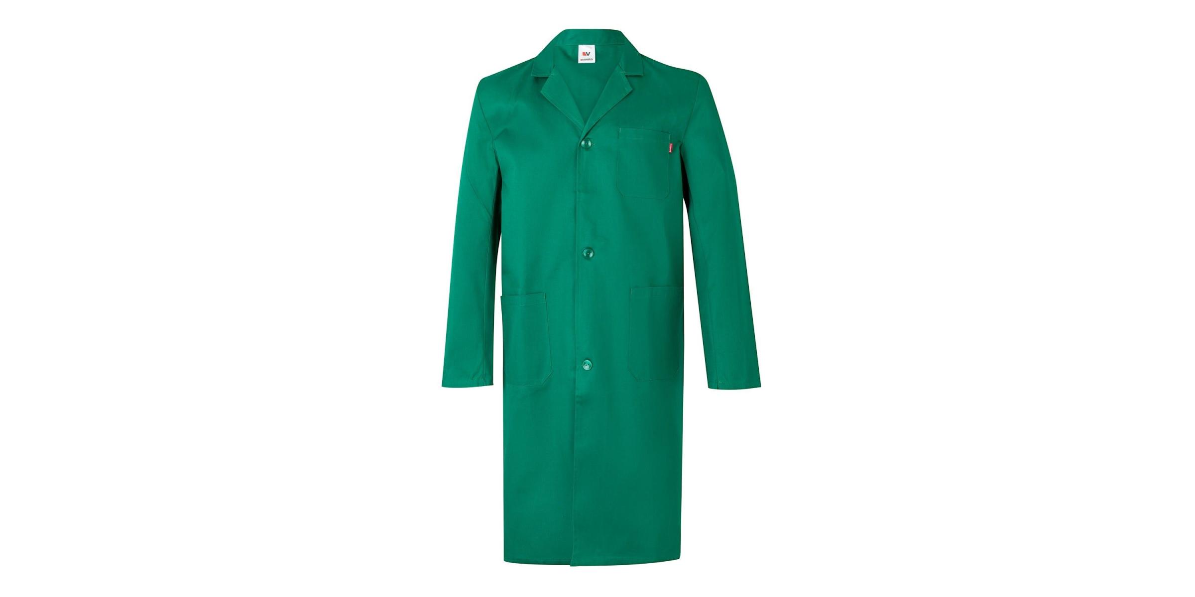 Su diseño práctico, con cierre central con botones y cinturón trasero, garantiza un ajuste cómodo y libertad de movimiento durante la jornada laboral.